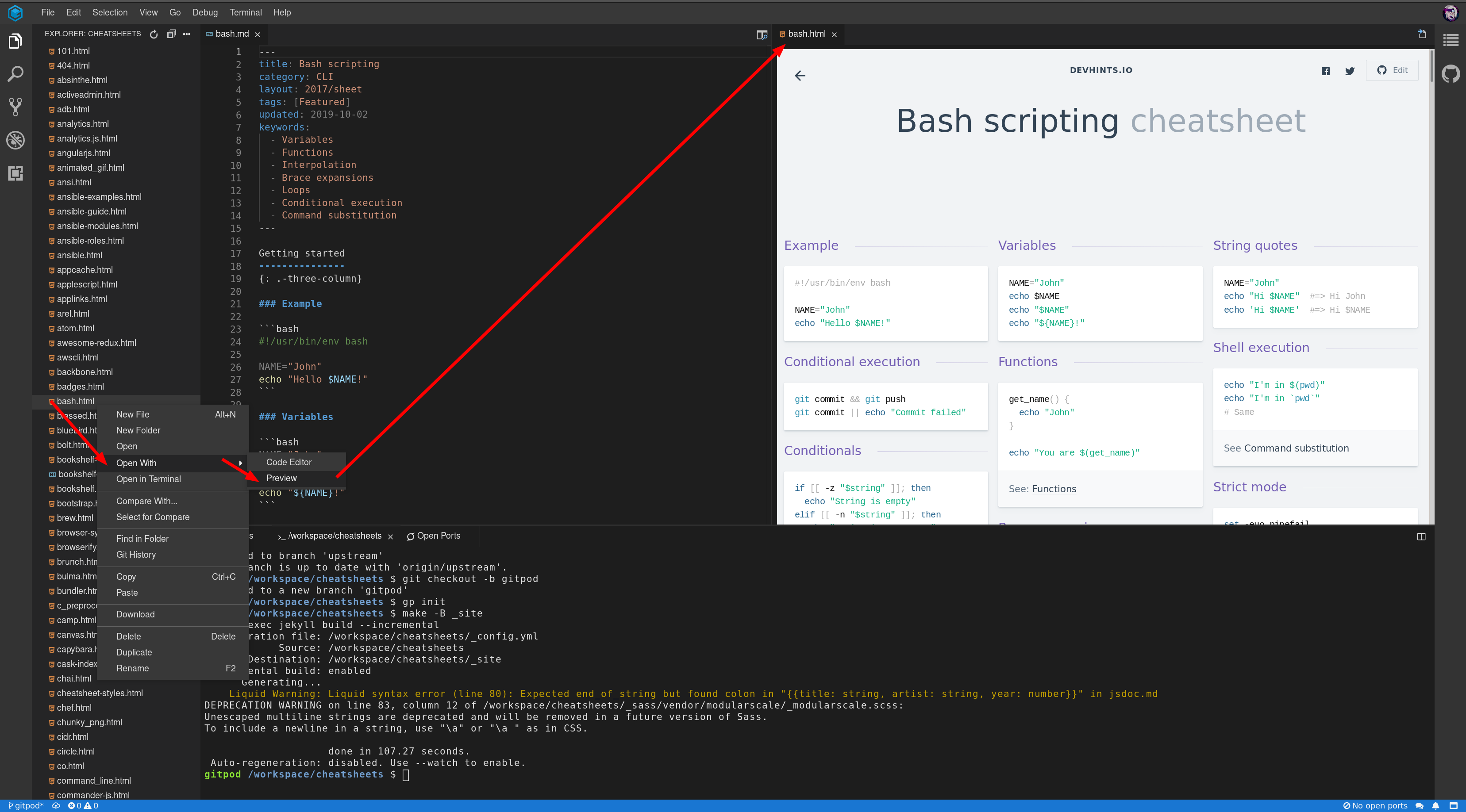 To open-up the environment simple natigate on https://gitpod.io/#https://github.com/rstacruz/cheatsheets